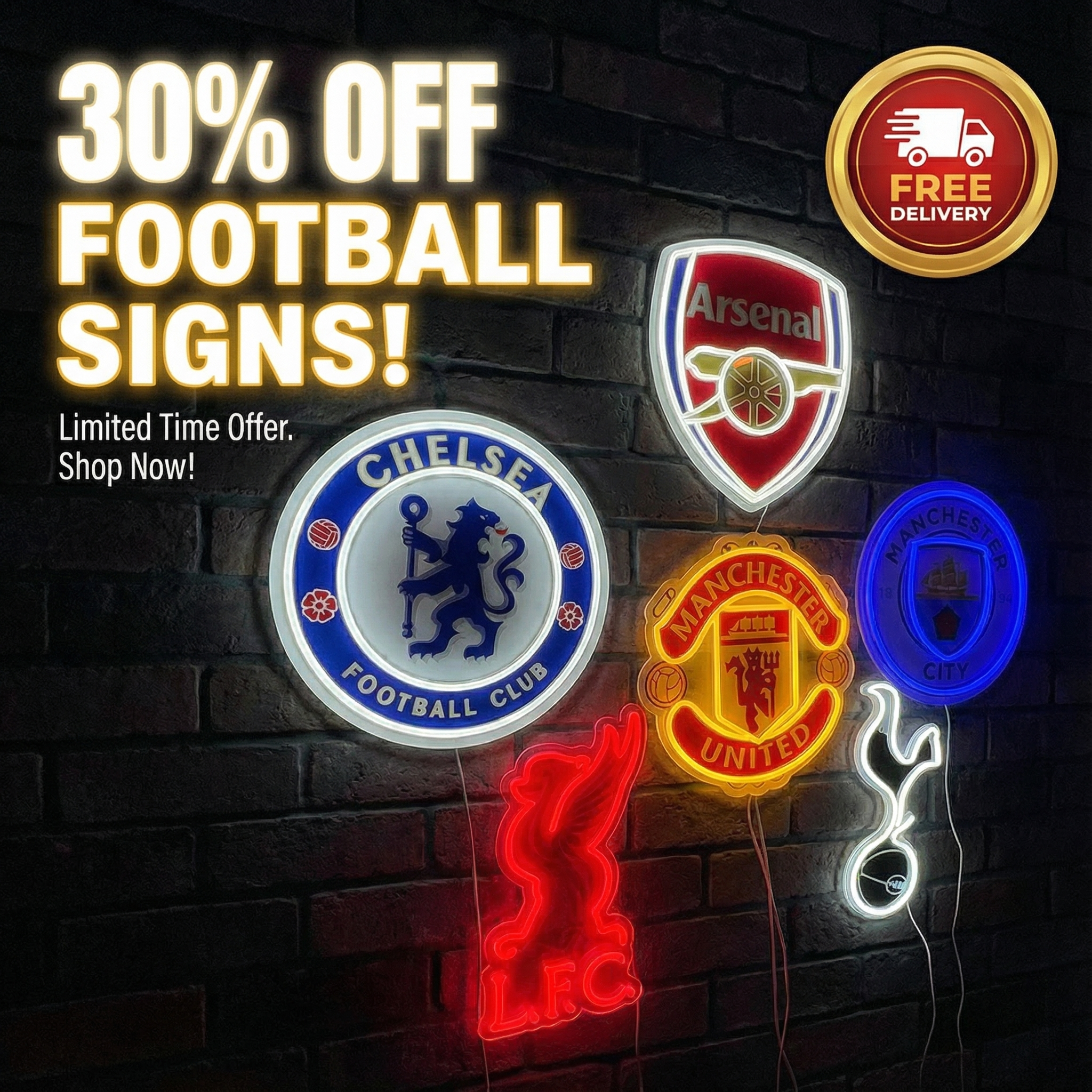 Choose your favourite club! Football crest led signs make for a great gift or a wall piece to show the club you are loyal to! Great for bars, clubs, rooms, mancaves and sport spaces.