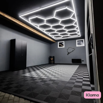 Create a stunning feature lighting display with our 14-Grid Hexagon Lights With Frame, designed for larger garages, gyms, studios and commercial spaces. This full-frame layout (4845mm x 2435mm) delivers ultra-bright 6500K cool-white lighting, a clean illuminated border, and optional RGB colour control via mobile app for a fully custom look.