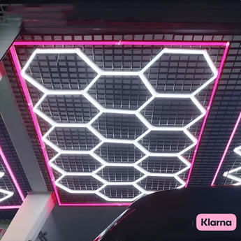 Make a bold statement in large garages, gyms and commercial spaces with our 14-Grid Hexagon Pink Lights With Frame. This impressive full-frame design (4845mm x 2435mm) combines ultra-bright 6500K cool-white central lighting with a vibrant pink LED border, giving your space a modern, eye-catching aesthetic.