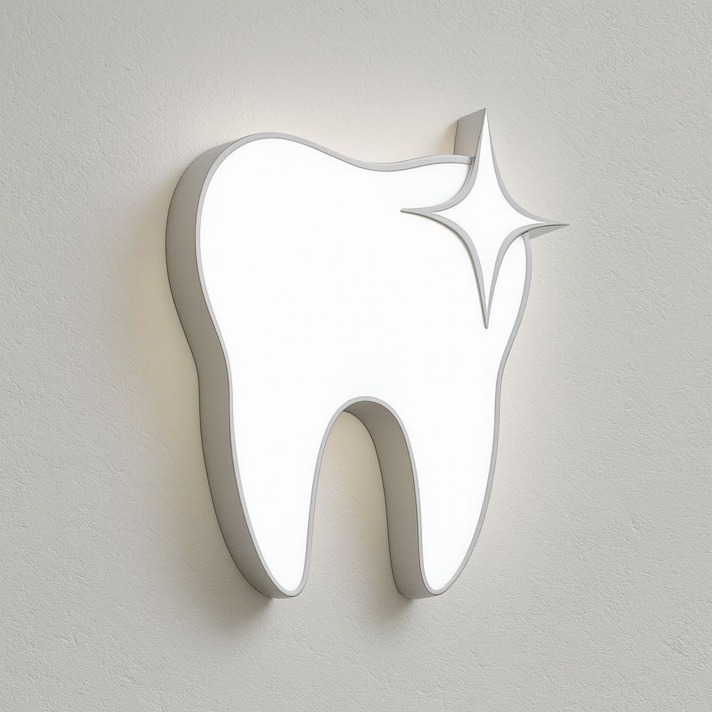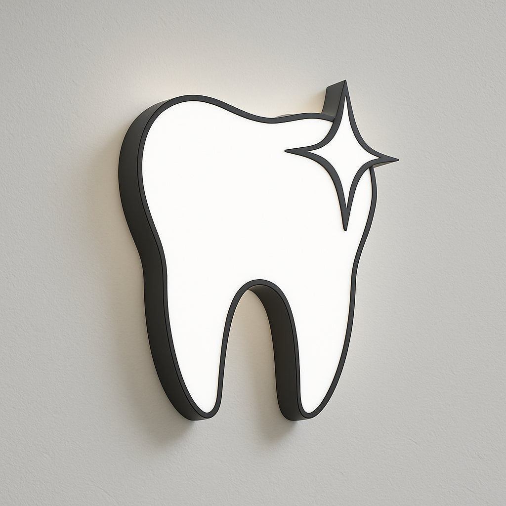 Perfect for dentists, orthodontists, and cosmetic clinics, the sign features soft, even lighting that highlights the tooth shape with a clean, professional look.