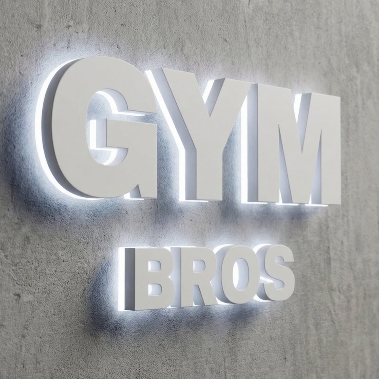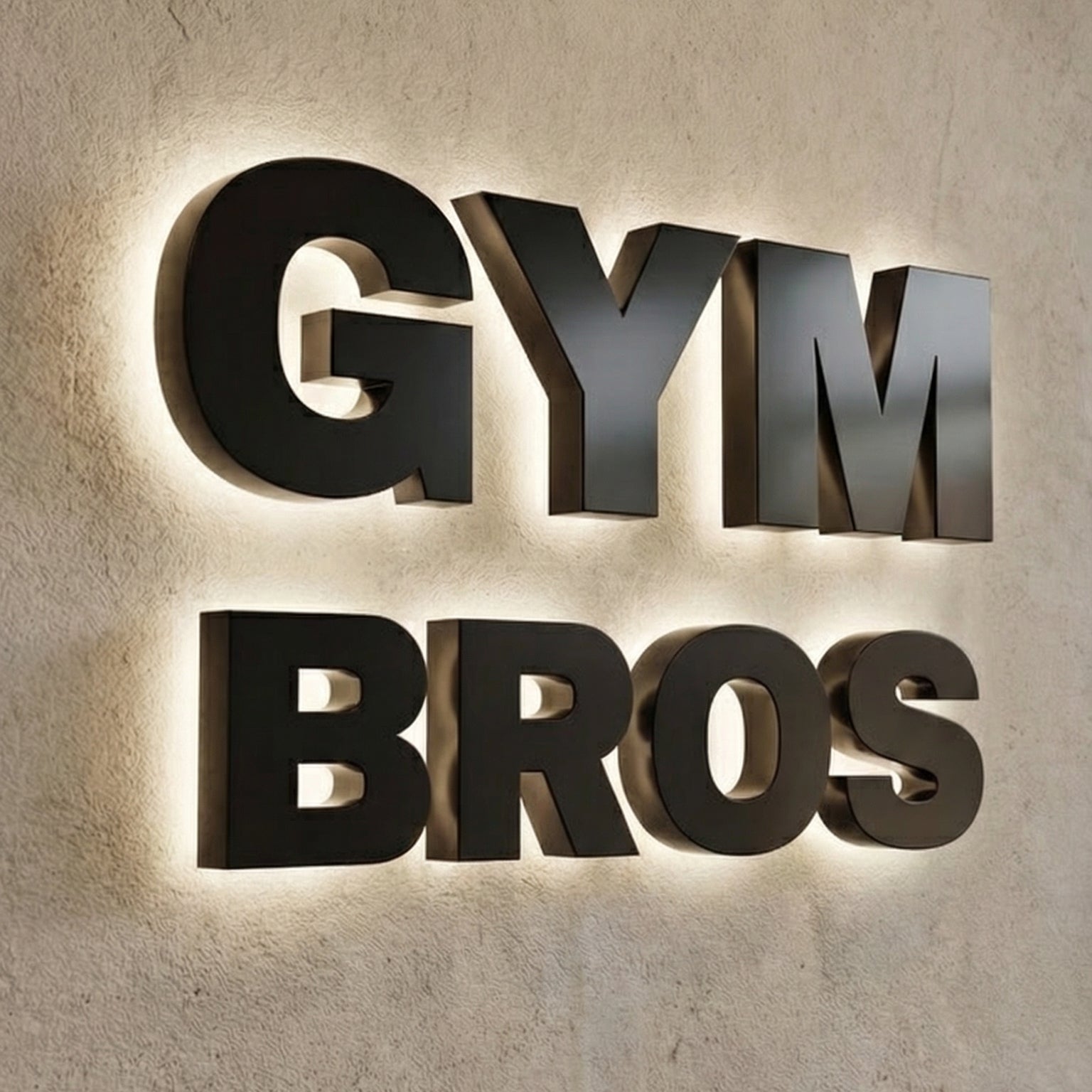 Make your gym impossible to ignore. The Gym Bros backlit sign features premium brushed metal lettering with a warm halo glow that creates a bold, modern statement on any wall.