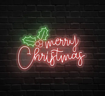 Bring the magic of Christmas to your home with our Holly Merry Christmas Neon Sign. Featuring a design with holly leaves and berries, this sign offers holiday vibes and warmth. Made from energy-efficient LED tubing, it offers a bright, inviting glow that enhances all Christmas themes.