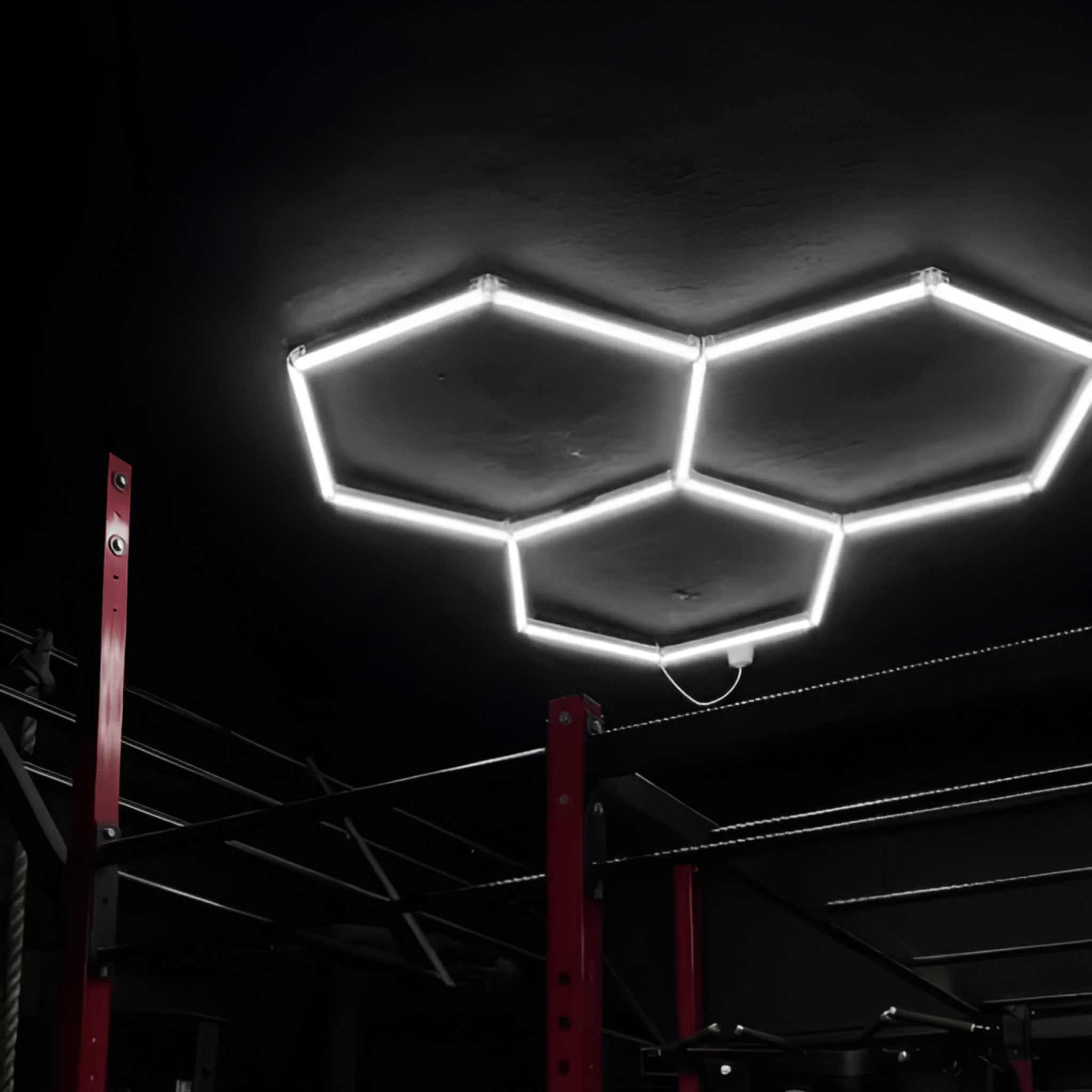 Depending on your usage, 3 grid hexagon lights are a fantastic choice for showing off your car collection, illuminating a gym or displaying them in your office. Our hexagonal lights feature a 3 grid layout which offers a compact design, the overall size is 1524mm x 1540mm. Whilst being compact, they feature 6500k cool white lighting. Our hexagonal lights provide a consistent bright light whilst working on tasks such as working out, detailing cars or brightening up a display room.