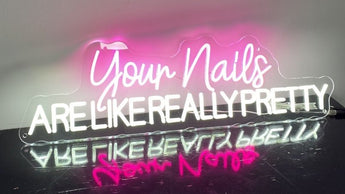 Turn heads and light up your space with the You're Nails Are Like Really Pretty Neon Sign—a playful, photo-ready statement piece perfect for nail salons, beauty bars, and glam rooms. Measuring 80cm by 23cm, this LED neon sign delivers vibrant colour and crisp lettering that pops on camera and in person.