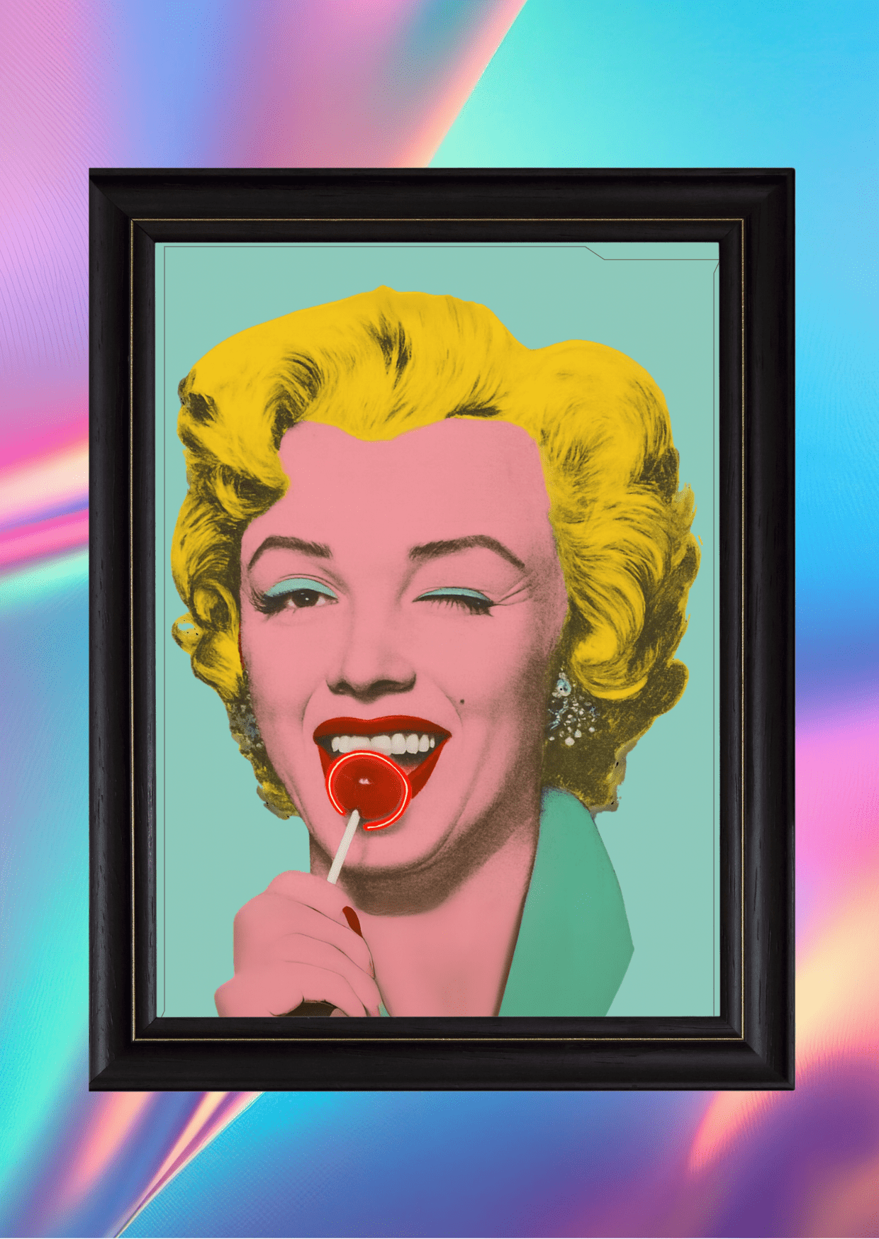 This art piece delivers a cheeky twist on Hollywood glamour, making it a captivating centrepiece for any modern interior.