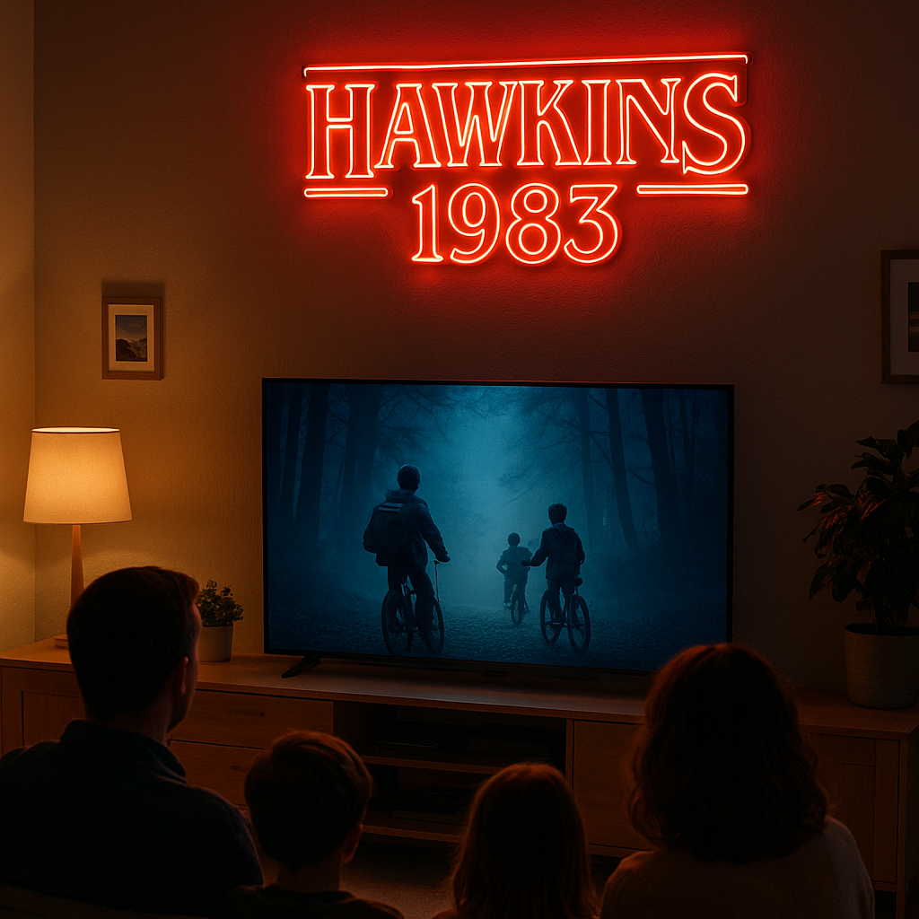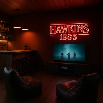 “HAWKINS 1983” is designed for fans of nostalgic sci-fi culture and makes the perfect feature in a man cave, cinema room, gaming setup or entertainment room.