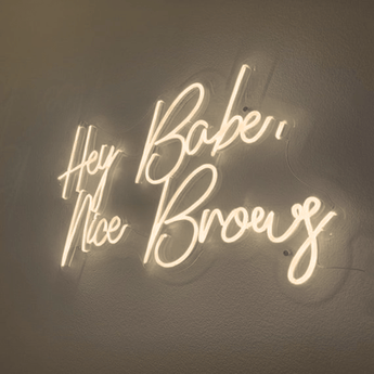 Transform Your Beauty Space with Our "Hey Babe, Nice Brows" Neon Sign