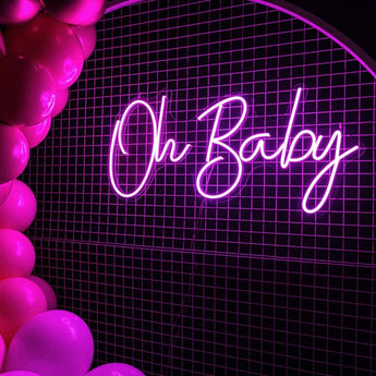 Illuminate your special moments with the enchanting glow of our "Oh Baby" neon sign. It's more than just a light—it's a statement piece that brings joy and warmth to any setting.
